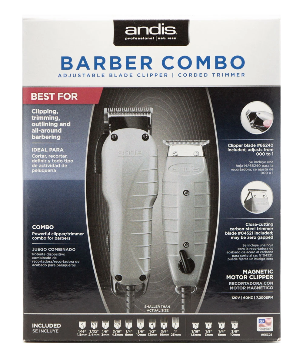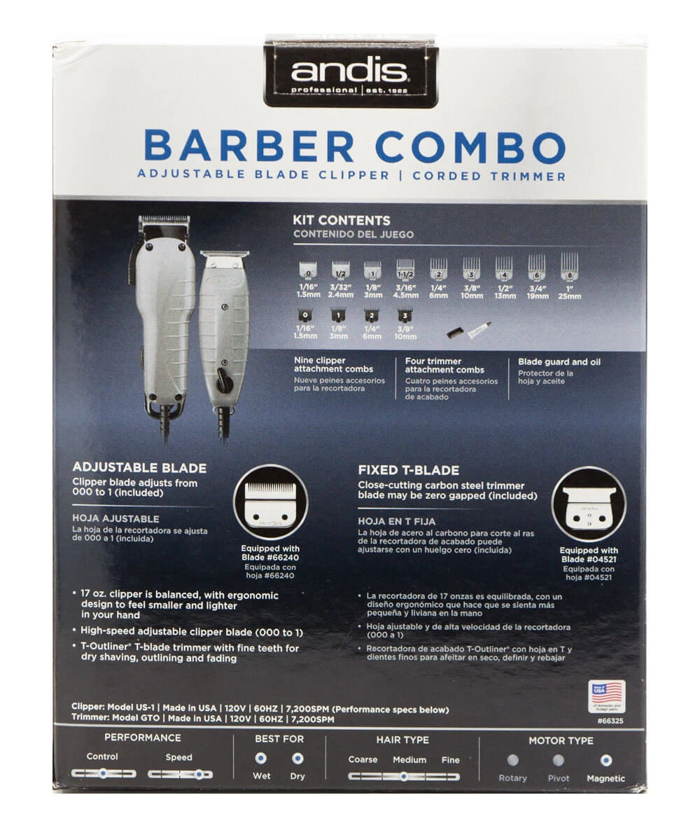 ANDIS BARBER COMBO ADJUSTABLE BLADE CLIPPER, CORDED TRIMMER #66325