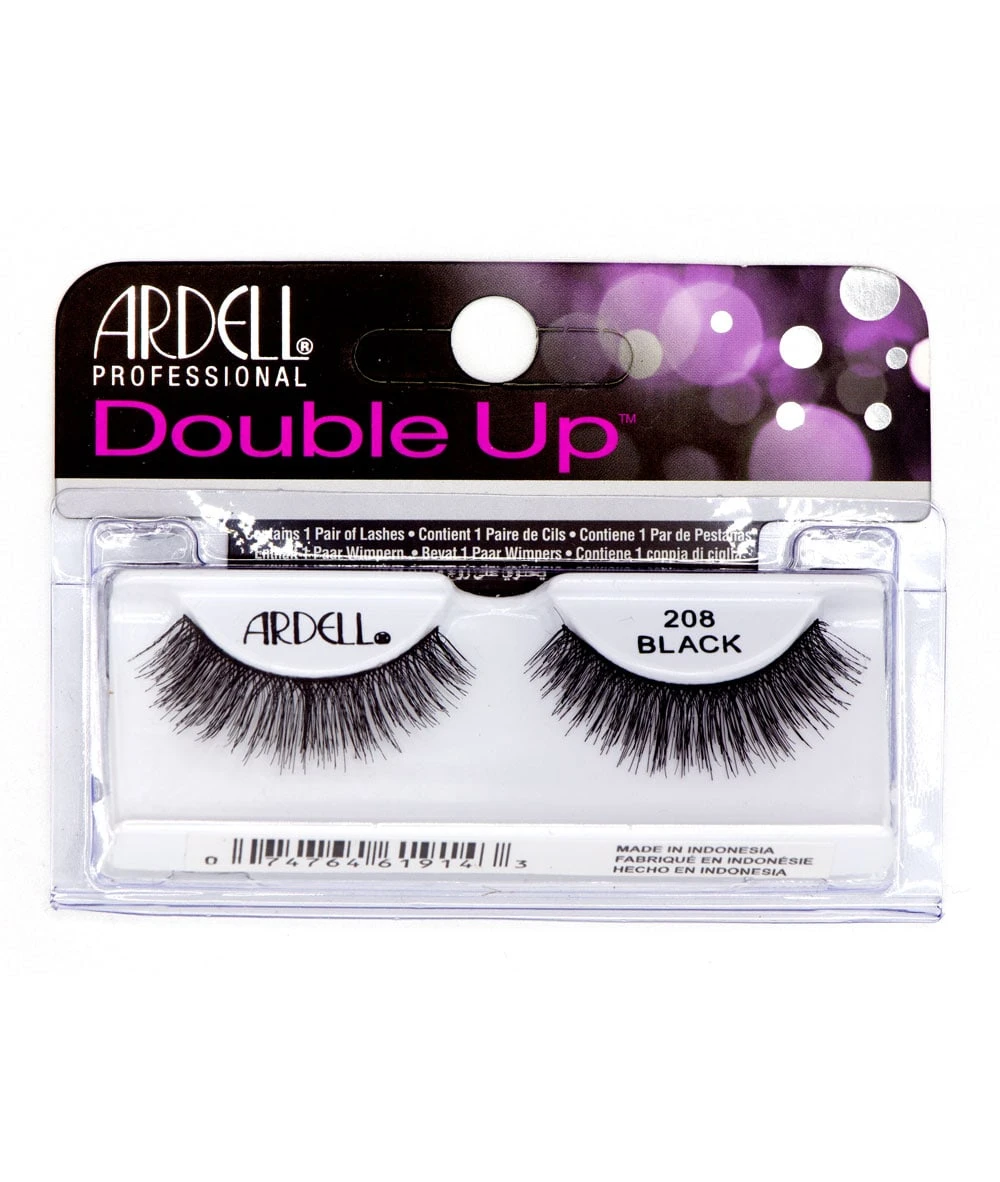 Ardell Double Up Lashes 208 have twice the amount lashes to bring out the bombshell beauty in everyone. Double layer style has a double fringe layer lash design to give you a fuller, fabulous look. Its like combining two pairs of standard lashes into one to form new pair of double layer lashes with amble, dramatic volume.