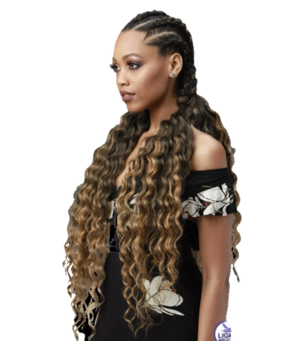 Bobbi Boss 3X Boss Braid PF Ocean Wave delivers premium quality and style with a natural ocean wave pattern perfect for braiding and crochet styles. Made with advanced Pre-Feathered and Pre-Stretched fiber, this hair offers a lightweight, tangle-free, and ready-to-use experience straight out of the pack. Its soft texture and voluminous look make it ideal for creating elegant, flowing styles with minimal effort.