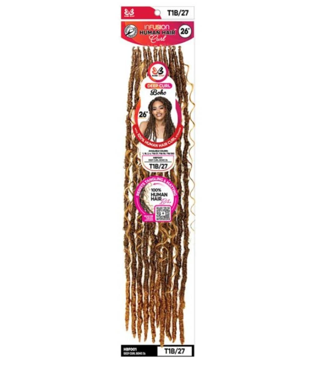 BOBBI BOSS INFUSION HUMAN HAIR CURL CROCHET BRAID DEEP CURL BOHO 26″