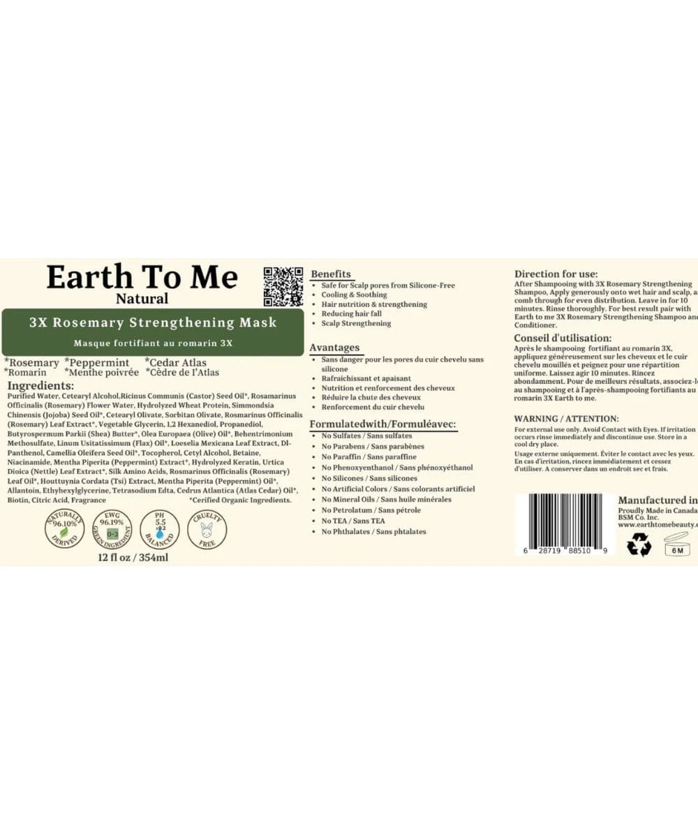 Revitalize your hair with our Earth To Me 3X Rosemary Hair Strengthening Mask. Formulated with a potent triple blend of rosemary extracts, this luxurious mask deeply nourishes and strengthens every strand, leaving your hair visibly healthier and more resilient.