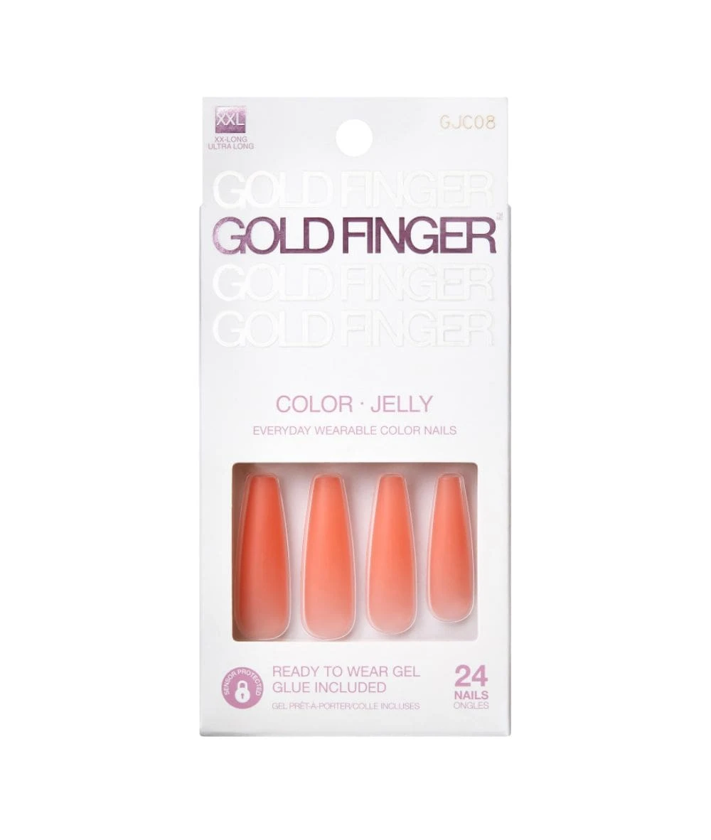 Gold Finger Everyday Wearable Color Jelly Nails Kit features 24 pieces of glue-on nails with a glass like finish made of high-quality ABS material for long-wear and durability. Express your personal style with this collection of trendy jelly nails in vibrant, fun pops of color.