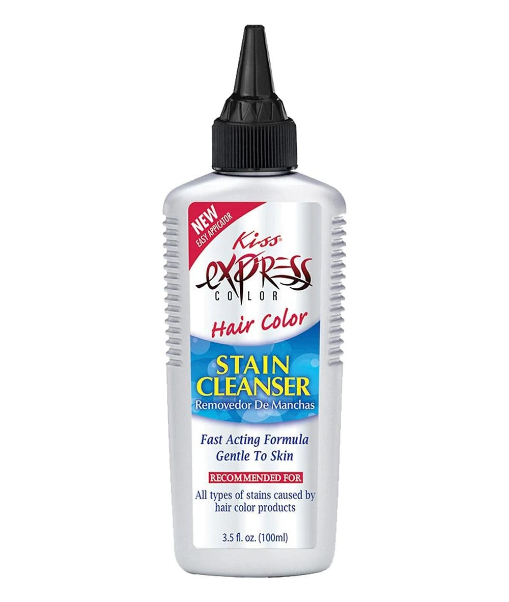 Kiss Express Color Stain Cleanser is a fast-acting formula that removes all types of stains caused by hair color products.
