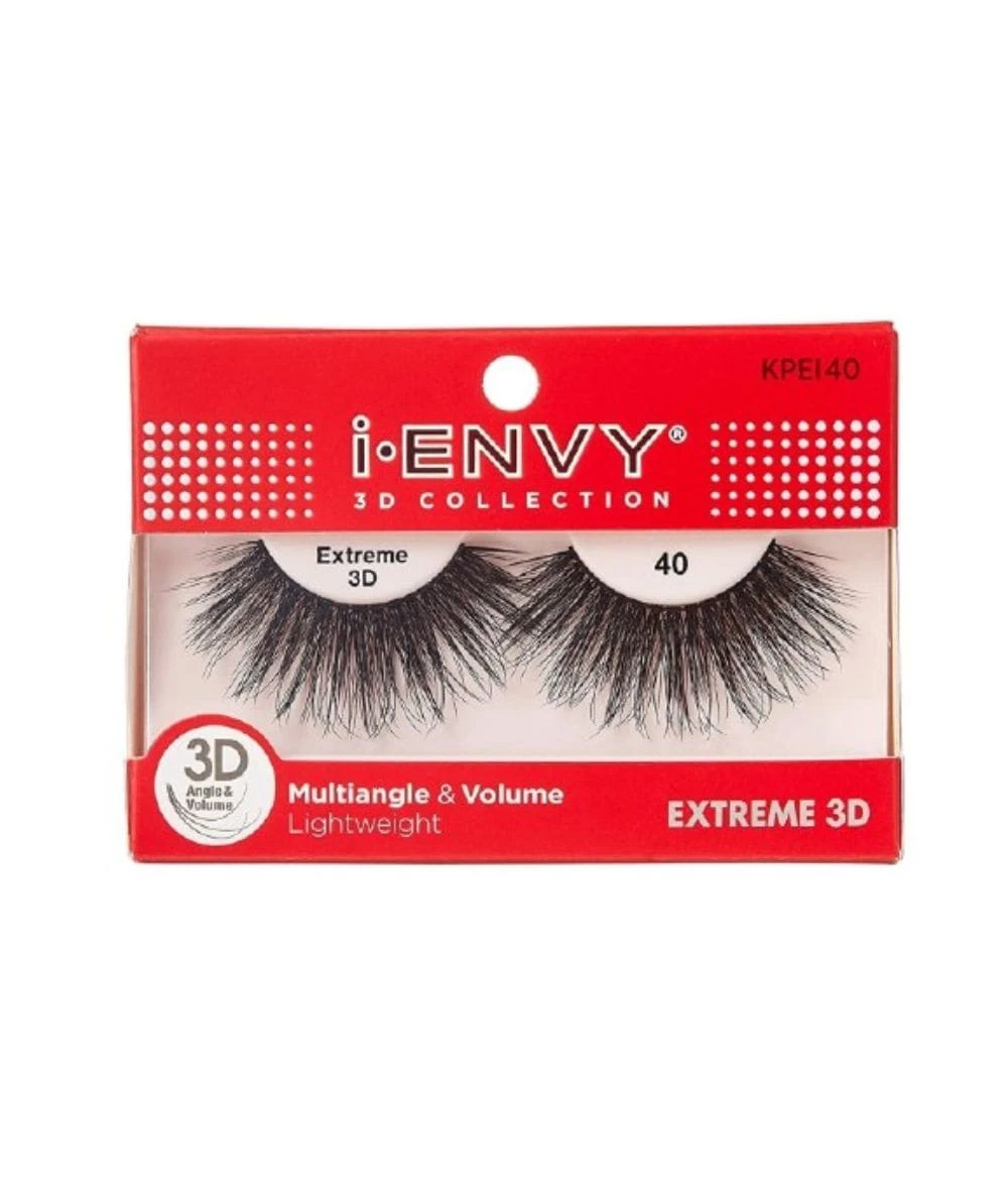Kiss i-Envy Extreme 3D Lashes #KPEI40 are designed to deliver a bold, multi-dimensional look with their 20mm length and multi-angle layering. These lightweight lashes provide intense volume and length, making them perfect for dramatic eye makeup styles.