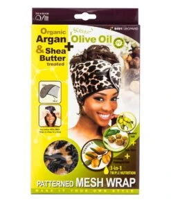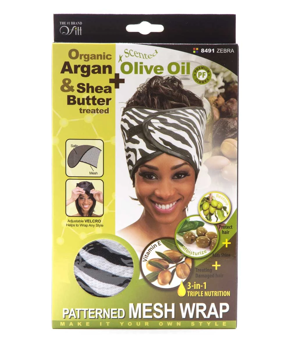 M&M QFITT ORGANIC ARGAN & SHEA BUTTER OLIVE OIL PATTERNED MESH WRAP ASSORTED PRINT #8491
