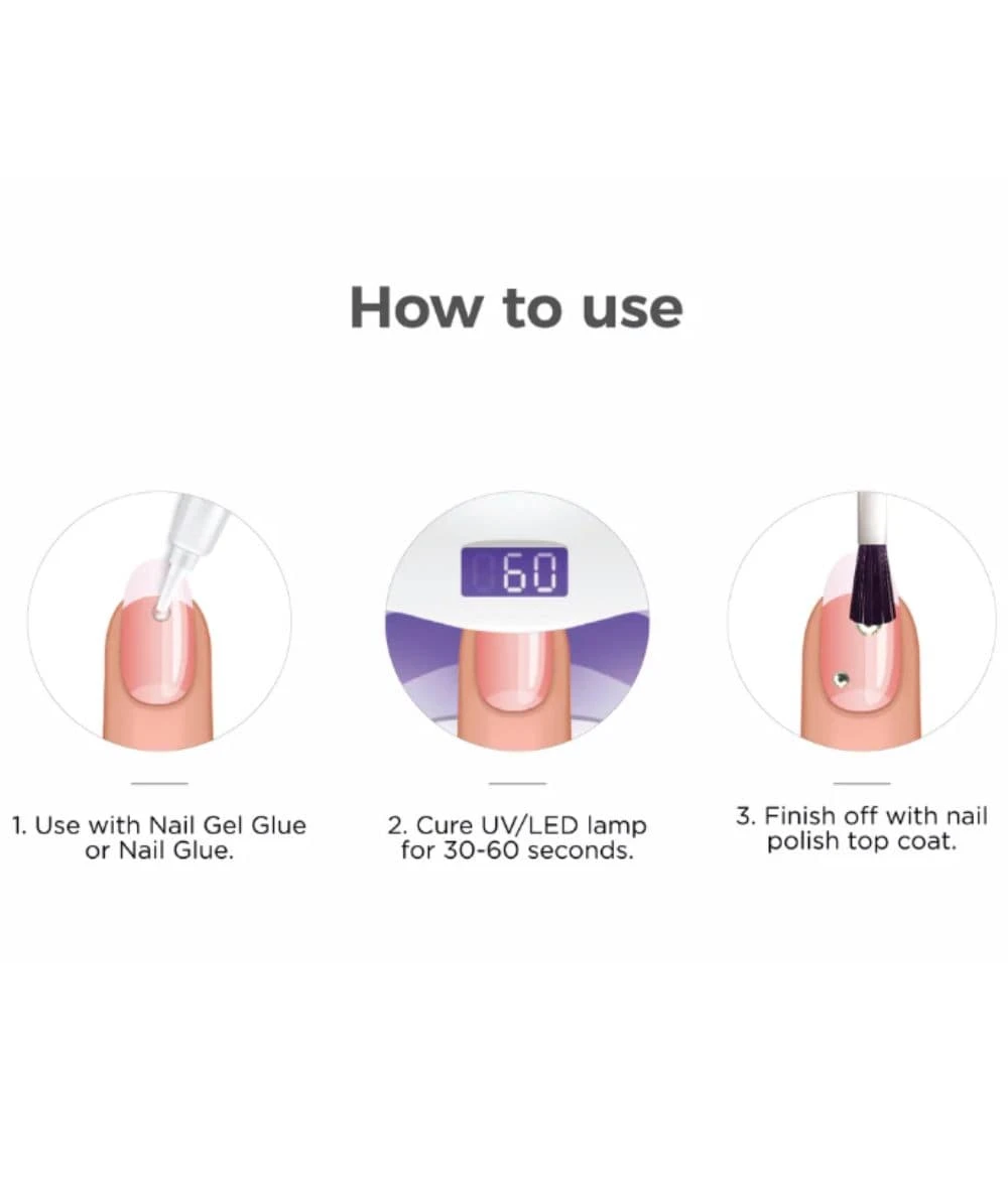 -Easy to apply with nail gel glue or nail glue, finish off with nail polish topcoat.