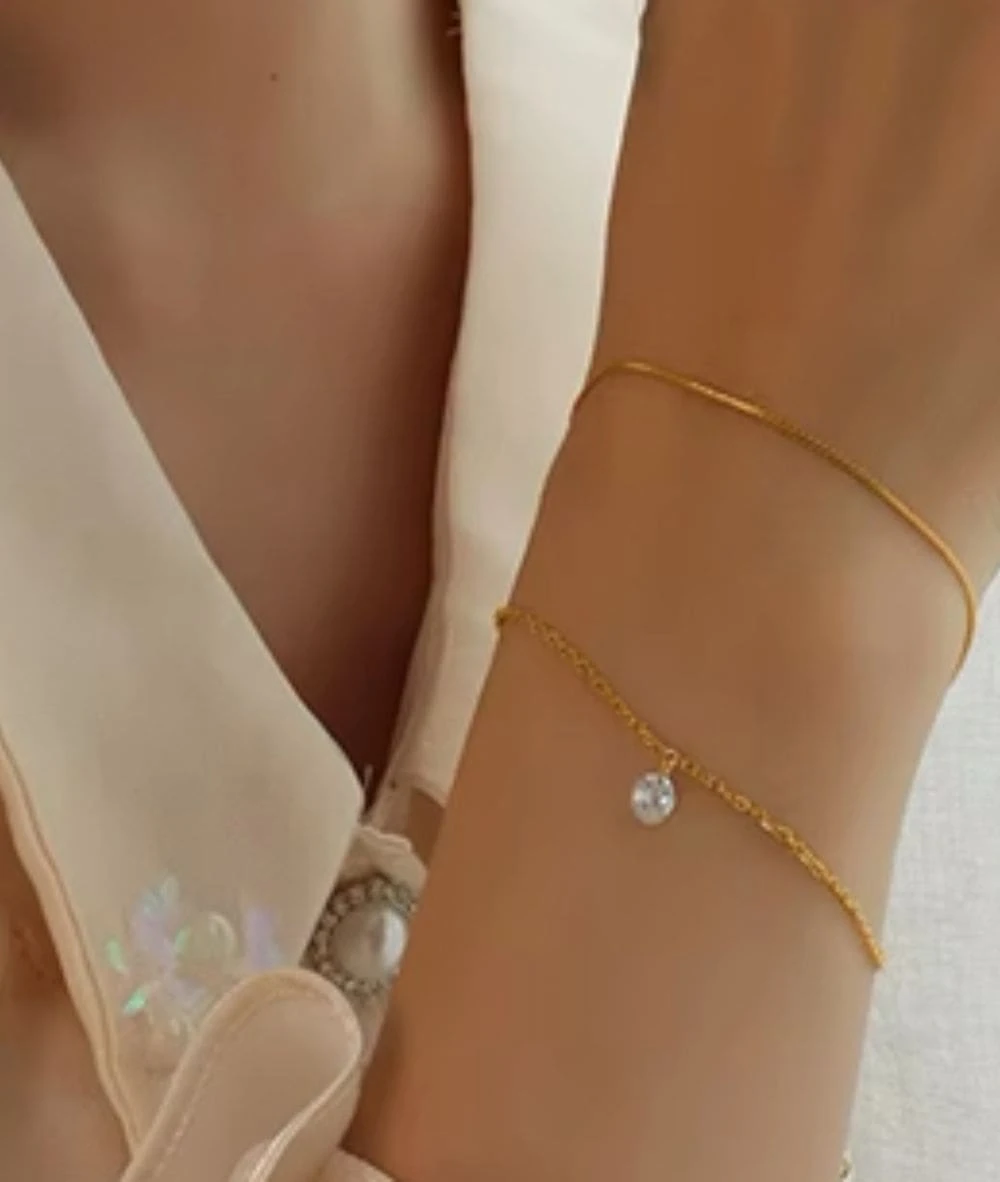Nude Rose Stainless Steel 18K Gold Plated Cubic Charm Layered Chain Bracelet #B-035