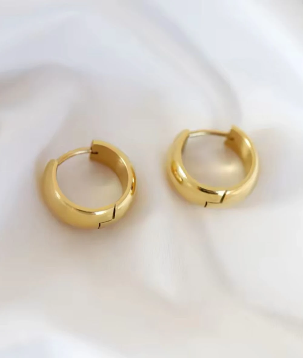 NUDE ROSE STAINLESS STEEL 18K GOLD WIDE SMALL BOLD EARRING #E-202