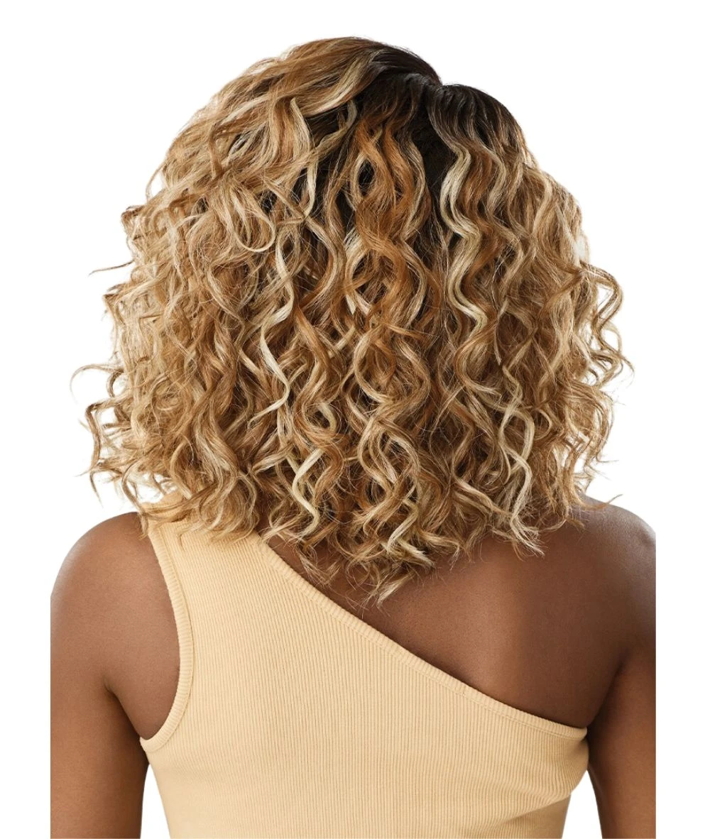 The Outre Melted Hairline Martisha wig features a 14-inch curly style with a natural Yaki texture. Its HD transparent lace and pre-plucked hairline with baby hairs provide a seamless, realistic appearance. Designed for comfort, the wig includes a pre-attached elastic band and ComfortFit ear contour for a secure, glueless fit. Heat-resistant up to 400°F, it offers versatile styling options.