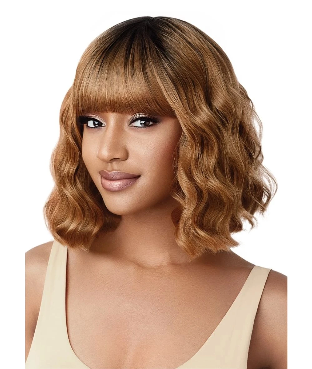 The Outre Wigpop Tommy wig offers a stylish, medium-length wavy bob with bangs, designed for those seeking a fashionable yet low-maintenance look. Made from high-quality synthetic fibers, this wig is ready to wear straight out of the box and can be heat-styled up to 400°F for added versatility. Its lightweight construction and adjustable cap ensure a comfortable fit, making it perfect for everyday wear or special occasions.
