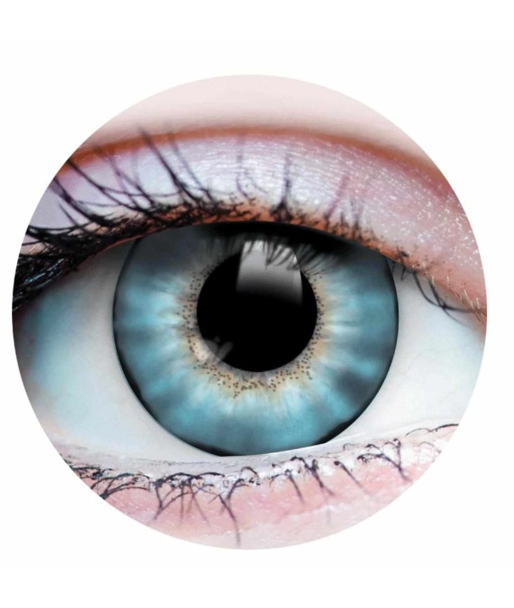 On dark natural eyes, these beauty lenses add a rich blue outer iris, creating a beautifully contrasted effect with the warmth of their center.