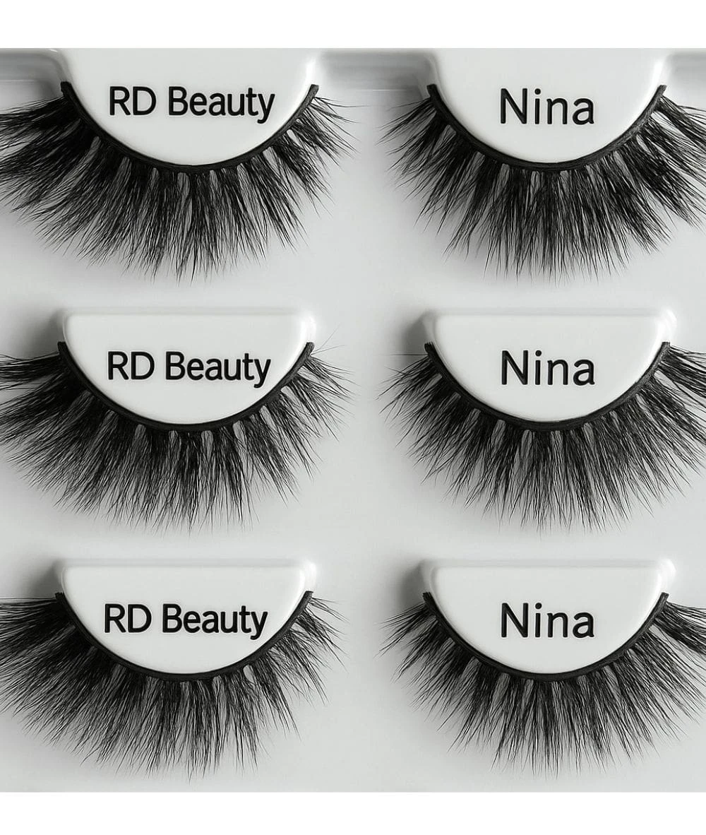 The RD Beauty 3 Luxury Pack in the style “Nina” offers a trio of handcrafted 3D silk lashes designed to enhance, lengthen, and lift the outer corners of your eyes. These flared, full lashes provide a natural yet glamorous look, making them suitable for any occasion. Pre-cut for convenience, they ensure a comfortable, natural-looking fit for all-day wear.