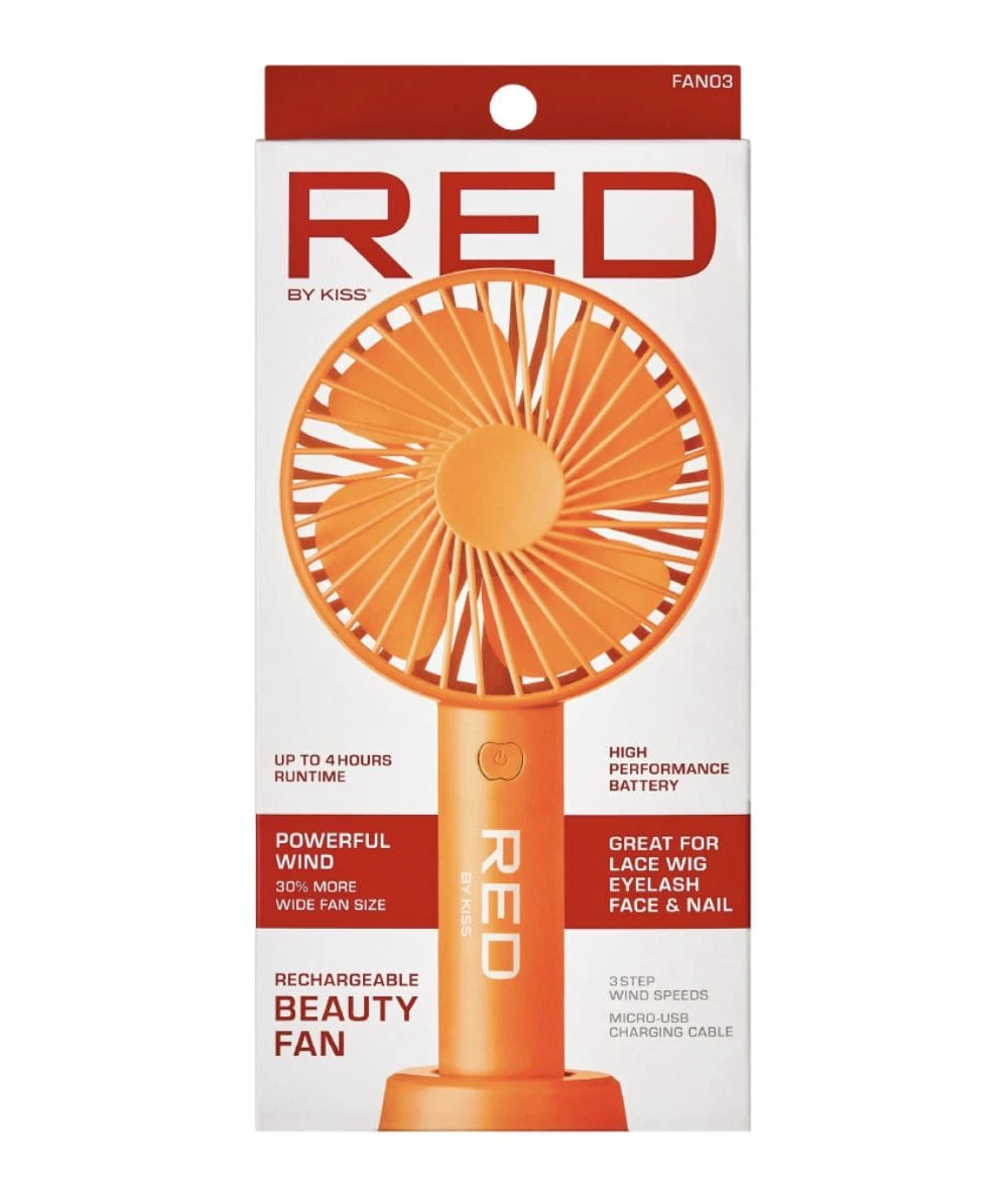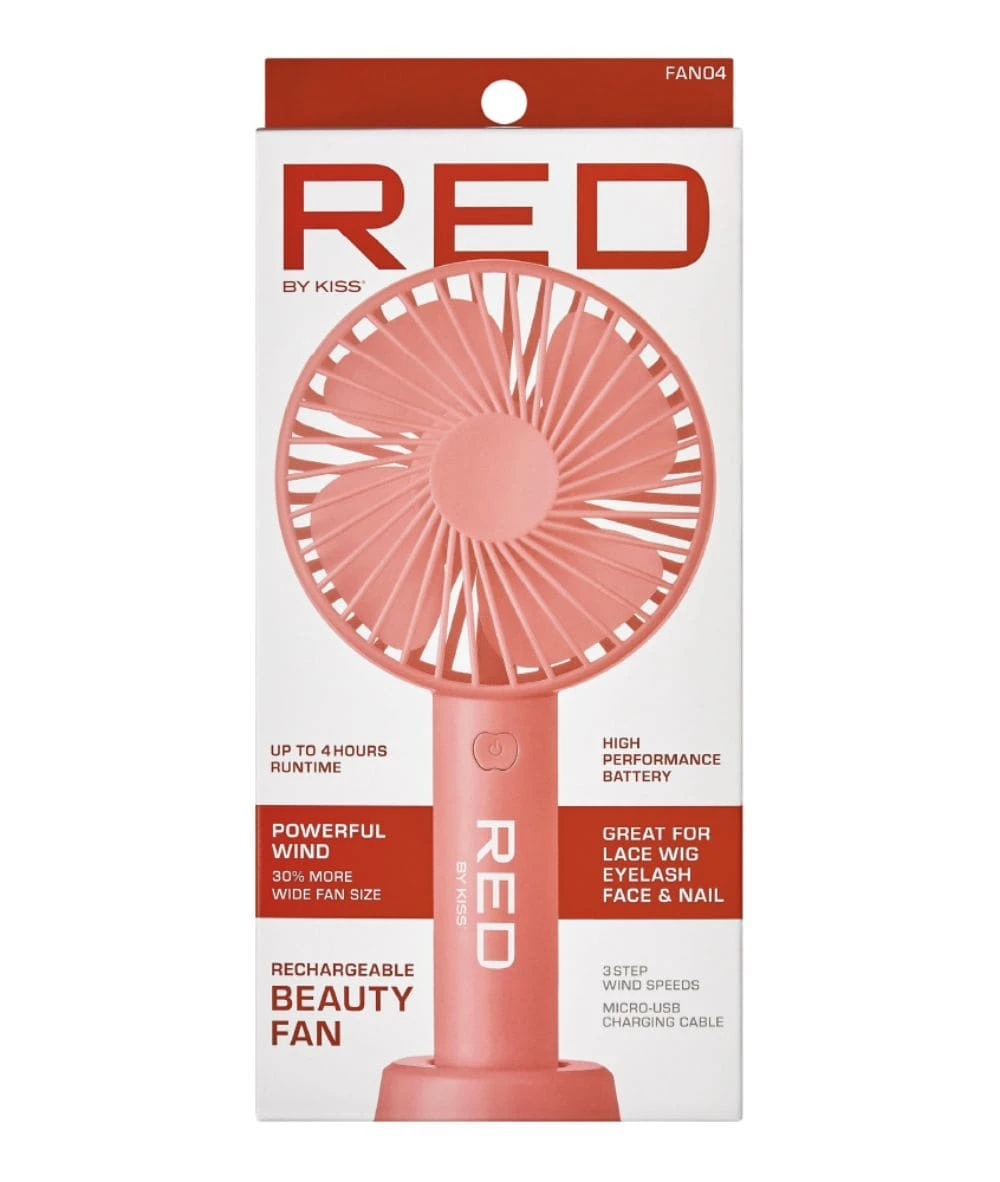Red By Kiss Portable Handheld Rechargeable Beauty Fan has three adjustable wind speeds to quicken up drying time for lace wigs, false lashes, face makeup and nails. With a high-performing rechargeable battery that has 4 hours of runtime and a detachable base stand, this fan is perfect for travel!