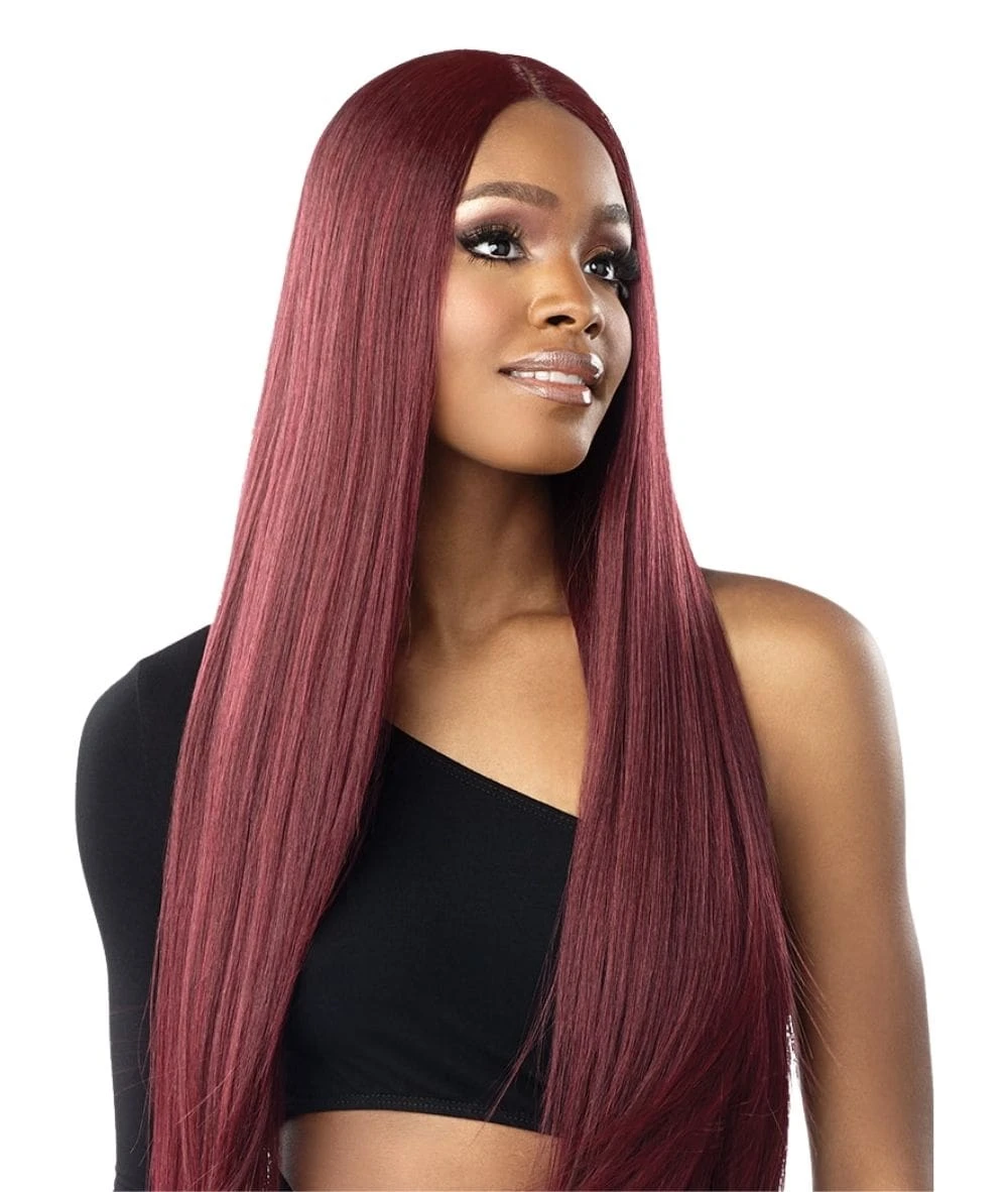 Salisha from Sensationnel’s Shear Muse collection is a bold, waist-length synthetic wig designed for those who love sleek, straight styles with a pop of color. This 35-inch unit features a salon-inspired cut, HD lace front, and a pre-plucked hairline with baby hairs for a natural finish. Available in vibrant shades like Apple Red, Carrot Red, and Crimson Red, Salisha offers a lightweight, glueless fit that’s beginner-friendly and heat-safe up to 400°F.