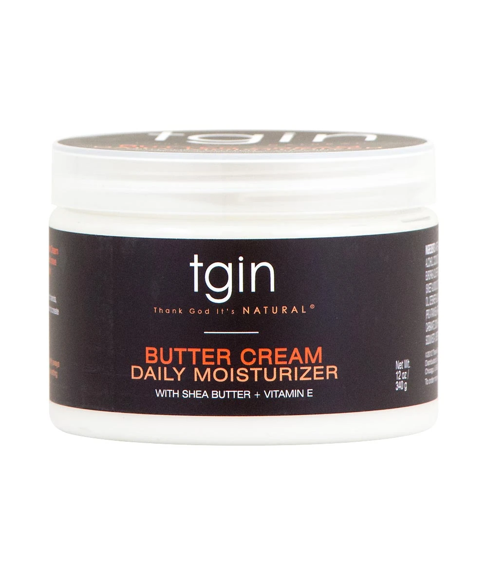 Enriched with shea butter, cocoa butter, and Vitamin E, tgin Butter Cream Daily Moisturizer will give your strands the moisture they need and crave for soft, shiny, manageable hair. Great for your children”s hair. No parabens, sulfates, petrolatum, lanolin, artificial colors, or animal testing.