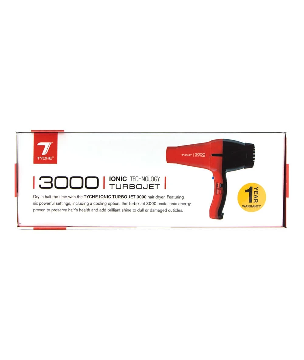 Dry in half the time with the TYCHE IONIC TURBO JET 3000 hair dryer. Featuring six powerful settings, including a cooling option, the Turbo Jet 3000 emits ionic energy, proven to preserve hair”s health and add brilliant shine to dull or damged cuticles.