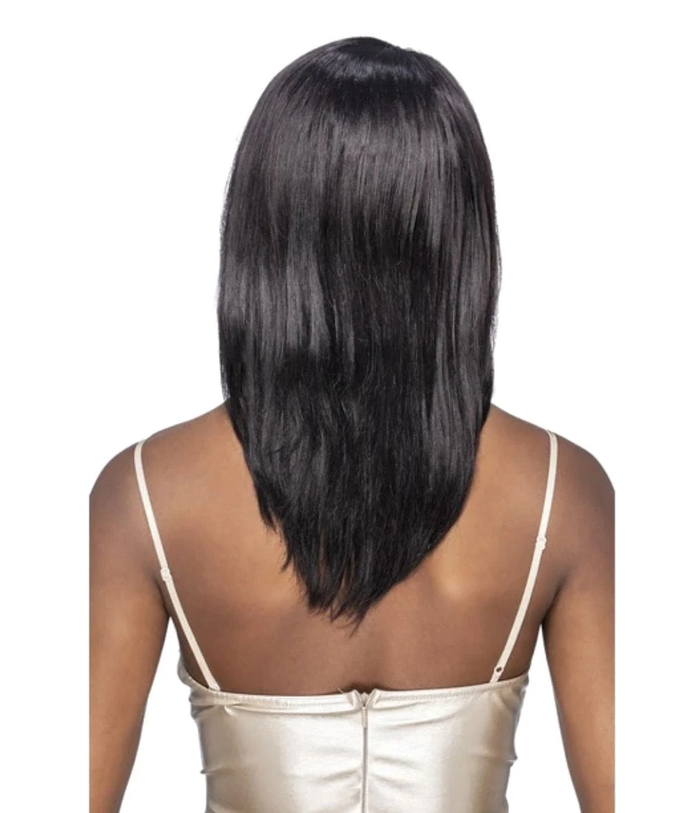 The Vivica A. Fox SEDA wig offers a sleek and sophisticated 16-inch layered straight style, crafted from 100% Brazilian Remi human hair. Its 360° HD Swiss lace construction ensures a seamless, natural hairline and versatile styling options, including updos and ponytails. The invisible side part and natural baby hairs enhance its realistic appearance, making it suitable for both everyday wear and special occasions.