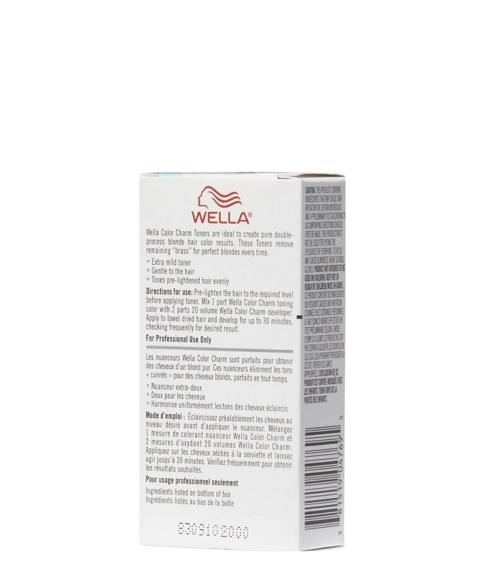 Take control after lightening and bid brassy goodbye. Achieve just the right shade to suit your look. Wella color charm Toners come in liquid form for quick and easy bottle applications. These toners come in a complete range that includes 8 toners in 3 families: Ash, Beige and Silver that add depth and tame brassiness and unwanted warm tones.